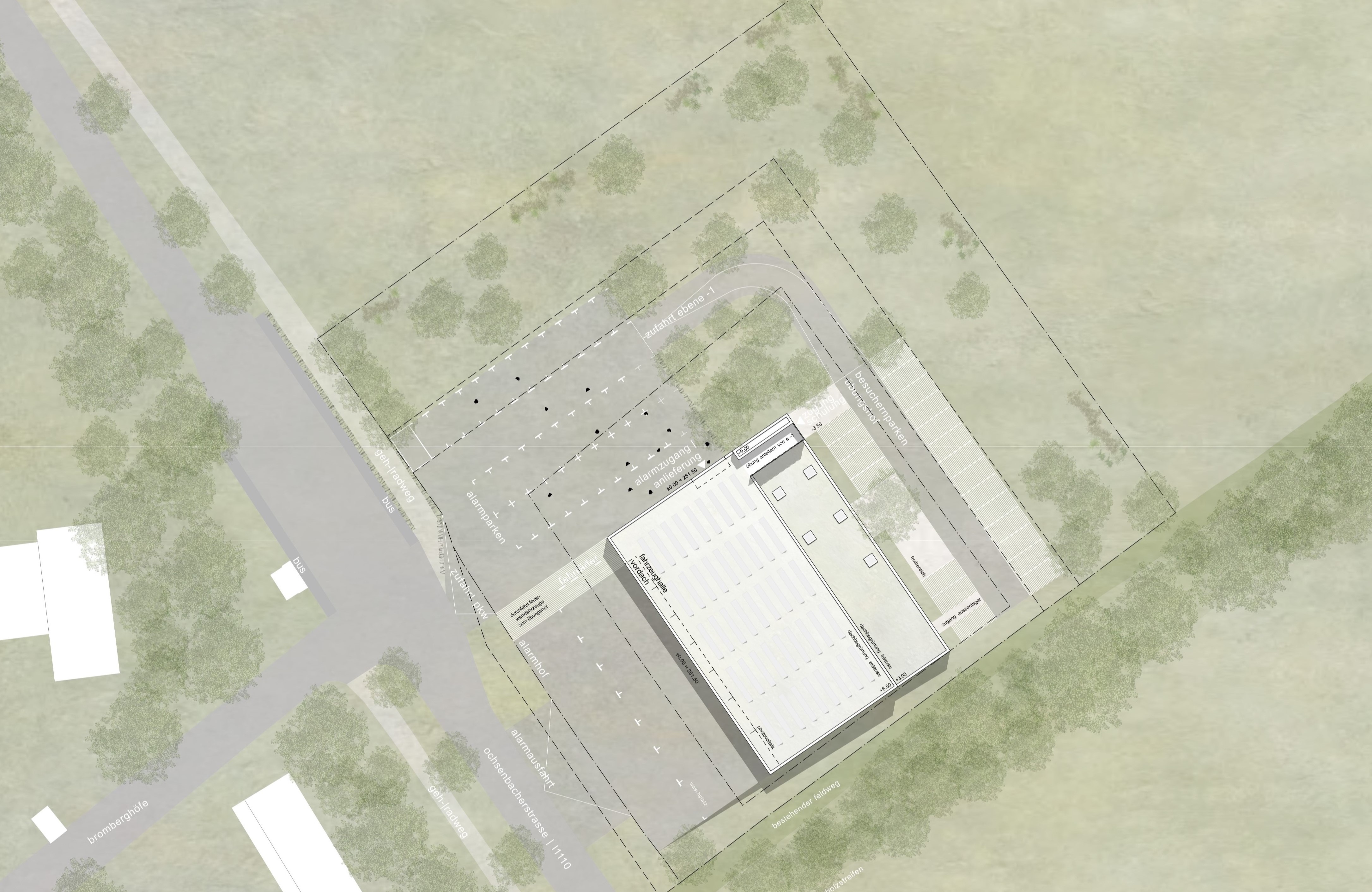 Auf dieser Grundlage wurde das Büro FPZ Zeese mit der Betreuung und Vorprüfung des nichtoffenen Realisierungswettbewerbs "Neubau Feuerwehr Kirbachtal" beauftragt. In enger Abstimmung mit der Stadt Sachsenheim wurde die Wettbewerbsaufgabe abgesteckt, ein Raumprogramm ausgearbeitet und eine ausführliche Auslobung für die Teilnehmer formuliert.