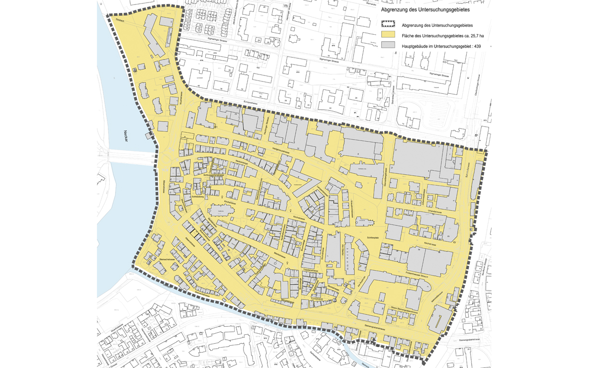 Plangebiet ca. 25,7 ha mit 439 Gebäude