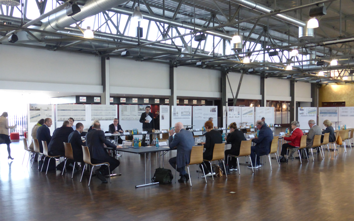Sitzung der Bewertungskommission am 11.04.2018. Vorsitz des Bewertungsgremiums: Markus Allmann, Allmann Sattler Wappner Architekten, München