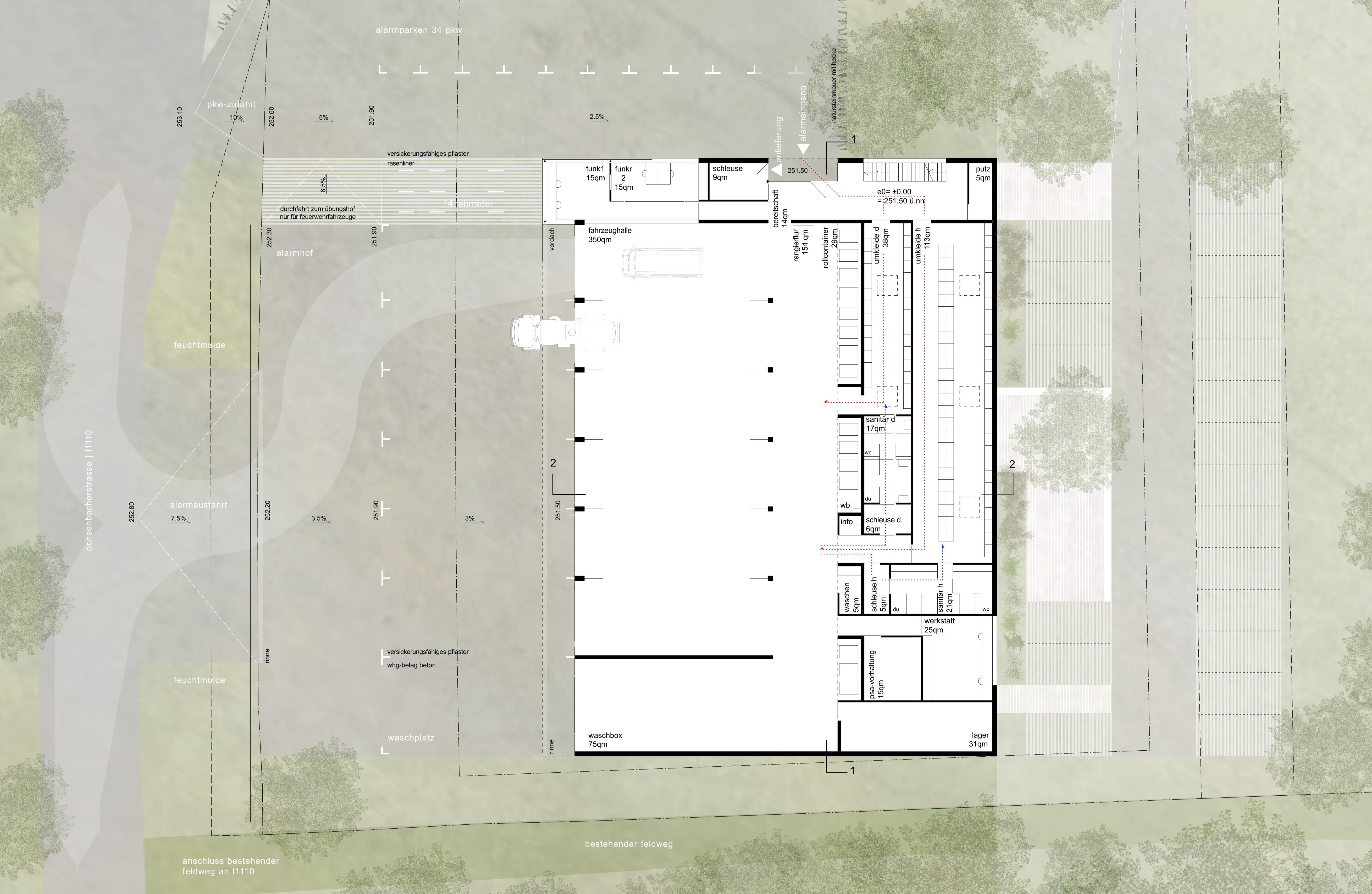 Die Stadt Sachsenheim beabsichtigte auf Grundlage der Feuerwehrbedarfsplanung eine Zusammenführung der örtlichen Abteilungen der freiwilligen Feuerwehr. Dafür ist der Neubau eines gemeinsamen Feuerwehrgerätehauses mit 7 Toren im Kirbachtal erforderlich. Für dieses wichtige Neubauvorhaben sollte ein nicht offener Realisierungswettbewerb mit vorgeschaltetem Bewerbungsverfahren zur Auswahl von insgesamt 20 Teilnehmern, davon 7 vorab ausgewählten Büros, durchgeführt werden.